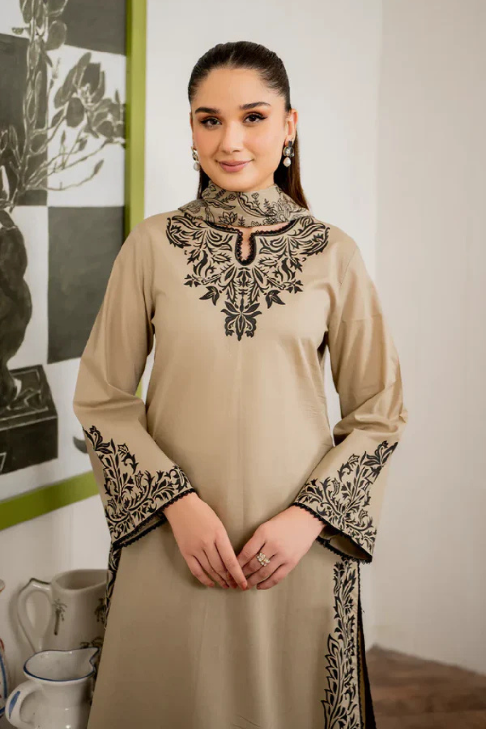3pc KHADDAR Embroidered UnStiched Dress With Printed Wool Shawl D-123