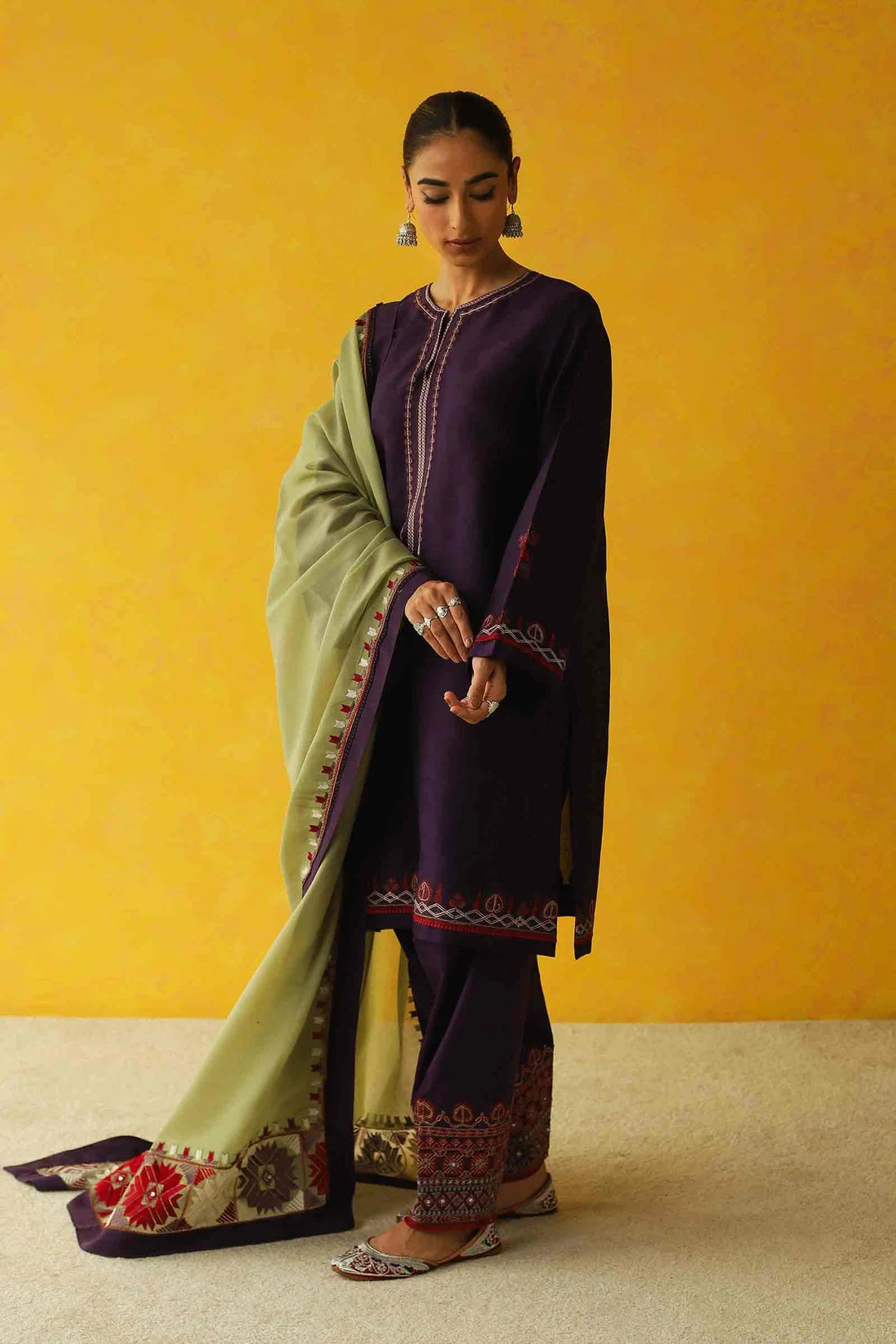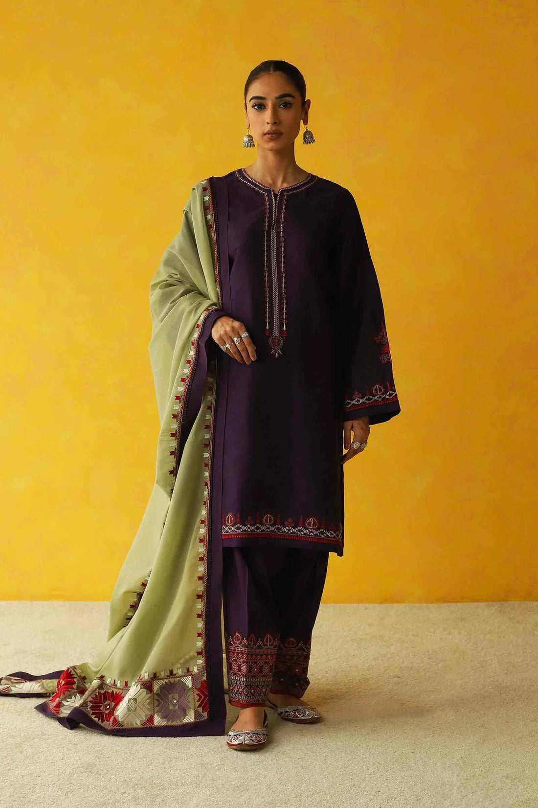 Embroidered Twill Shawl 2.75 Yards
